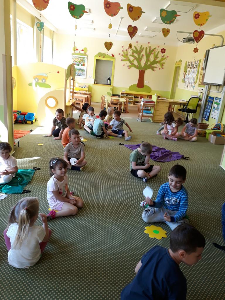 Barevná jsme školička a v ní svítí sluníčka To jsou naše děti do školičky letí.