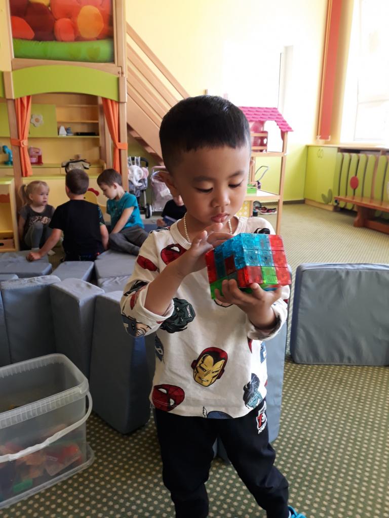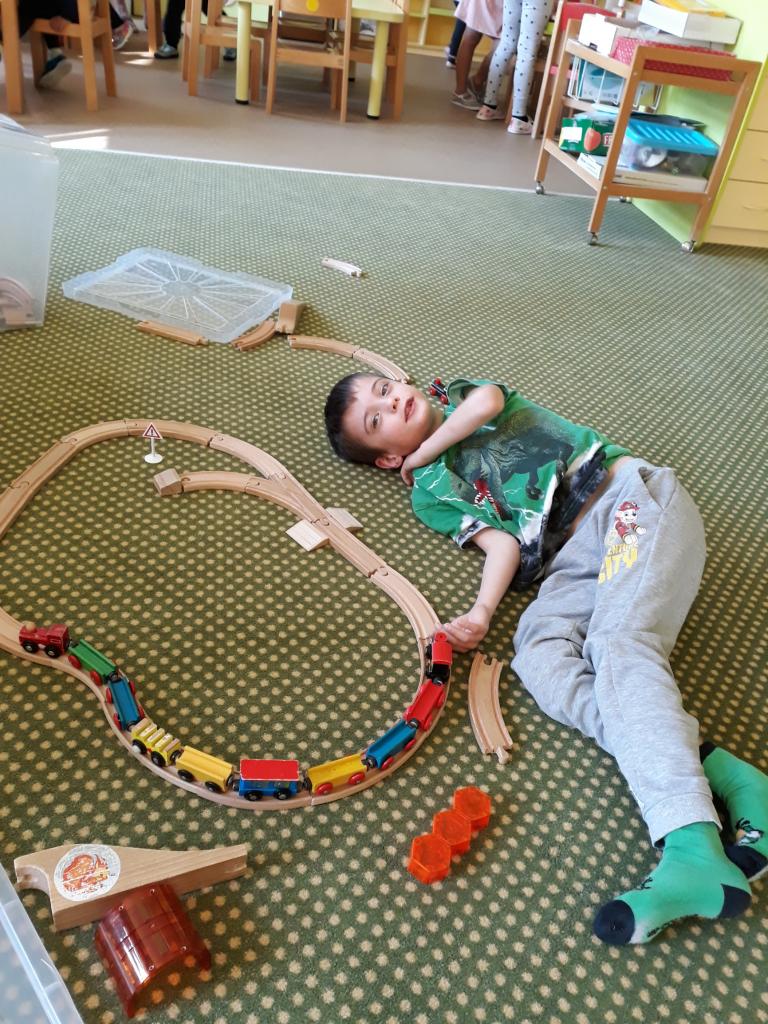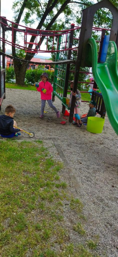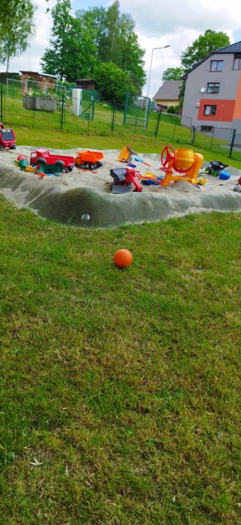 A že nebe nemá značky kutálí se mezi hračky kutululu tralala ve školce je zábava.