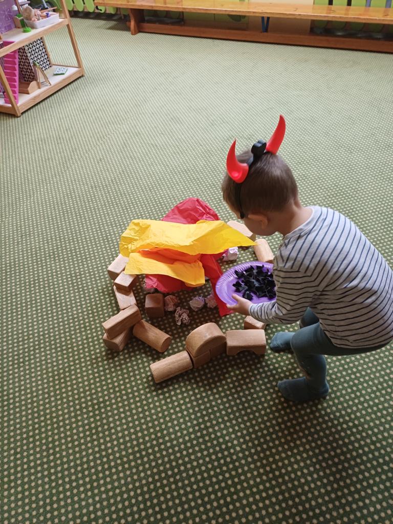 Téma plné her a činností charakterizující končící podzim a blížící se zimu. Honičky, pohybové hry, improvizace, říkadla, písničky. Zařazení činností k blížícímu se čertovskému období a adventu.