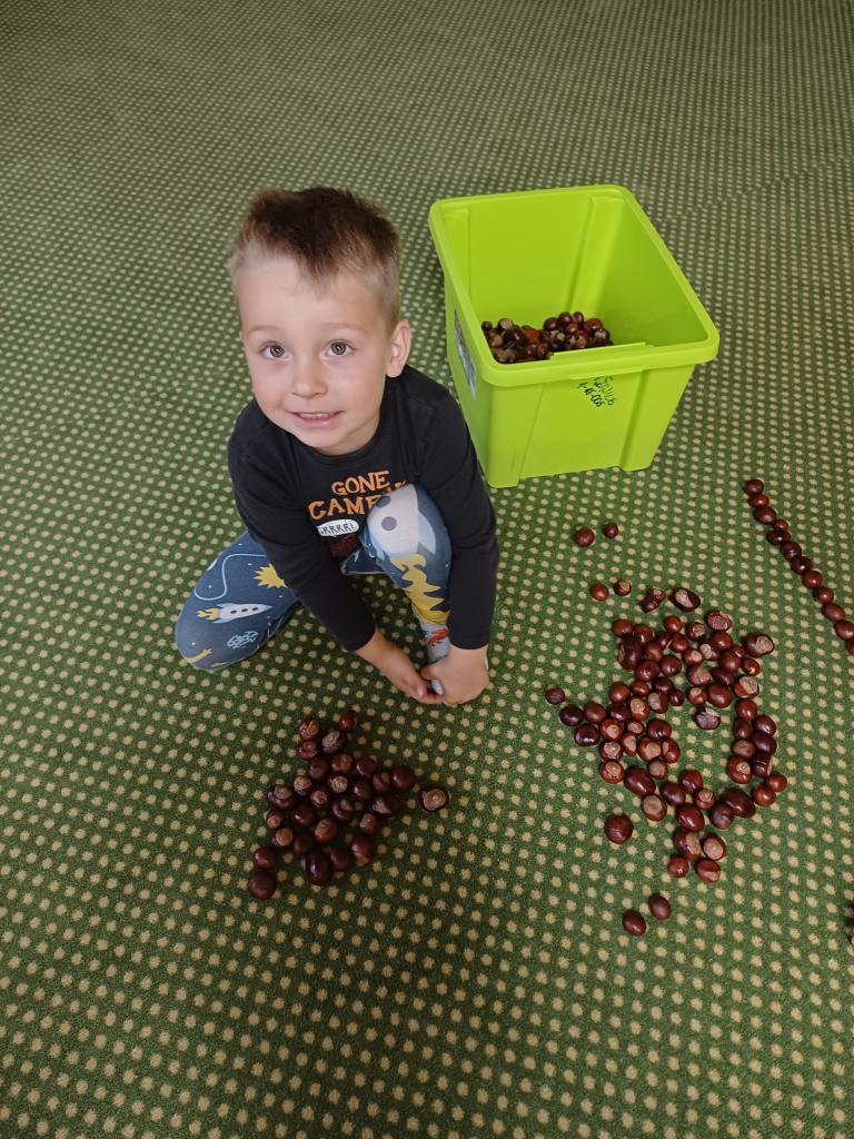Na podzim sbíráme kaštánky, vyrábíme z nich zvířátka, hrajeme si s nimi, povídáme si o kaštanovníku jedlém, o zdravém životním stylu, cvičíme s nimi.