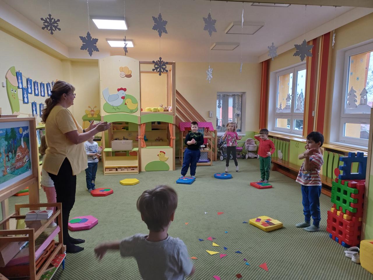 Barevná jsme školička a v ní svítí sluníčka To jsou naše děti do školičky letí.