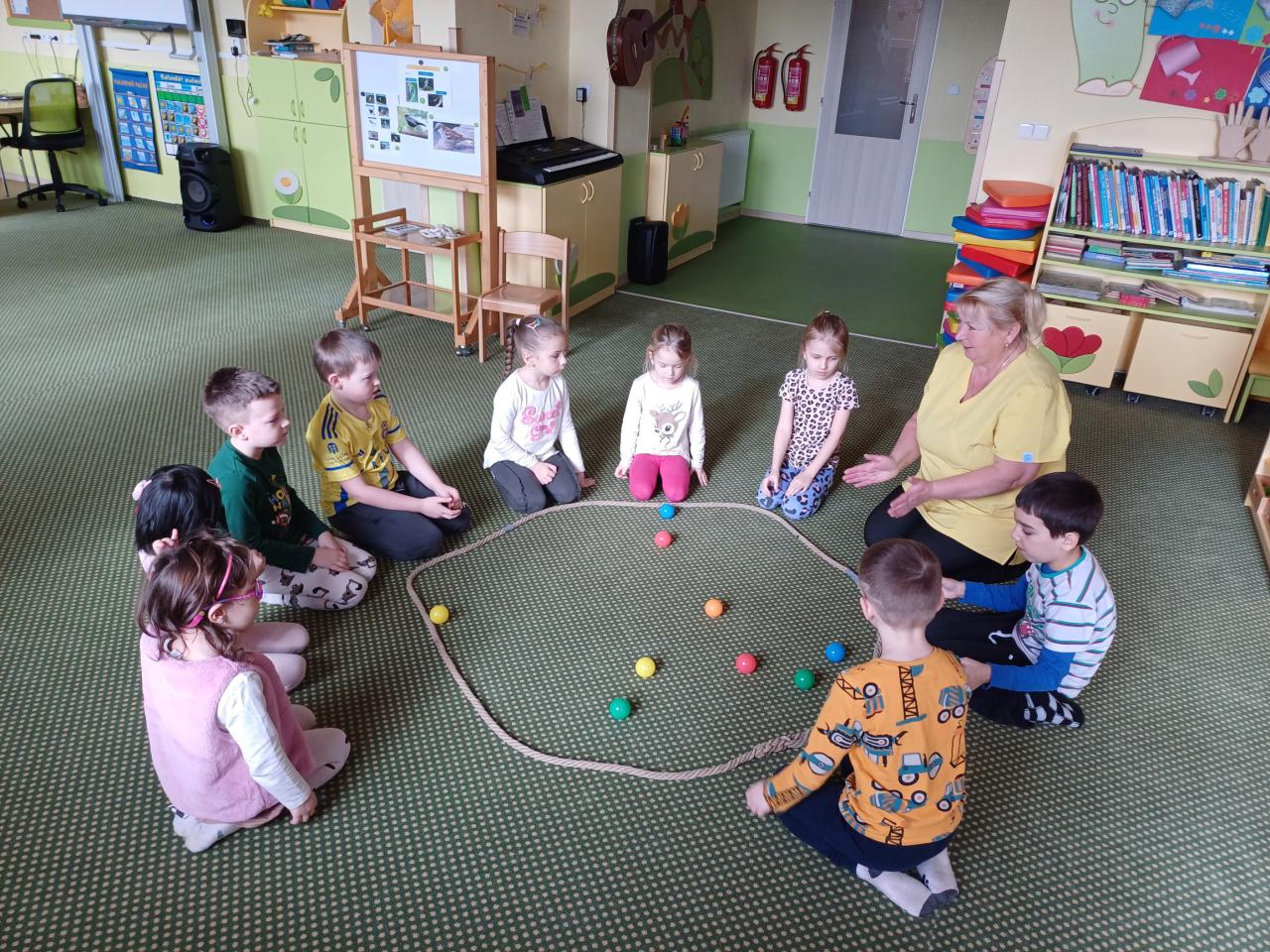 A že nebe nemá značky kutálí se mezi hračky kutululu tralala ve školce je zábava.