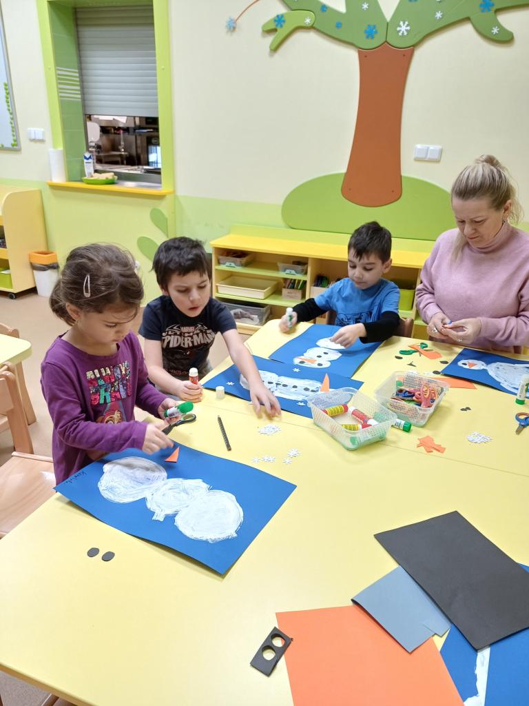 Příroda spí- pozorování zimní přírody, děti získávají poznatky o proměnách přírody, při hrách se sněhem využijí svou fantazii, prostřednictvím námětových her na sněhuláky si rozvíjí řeč a komunikativní dovednosti