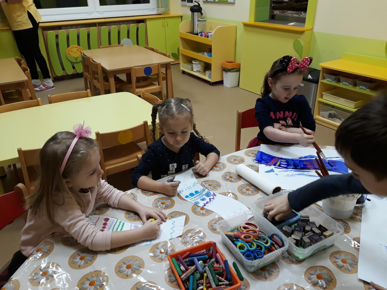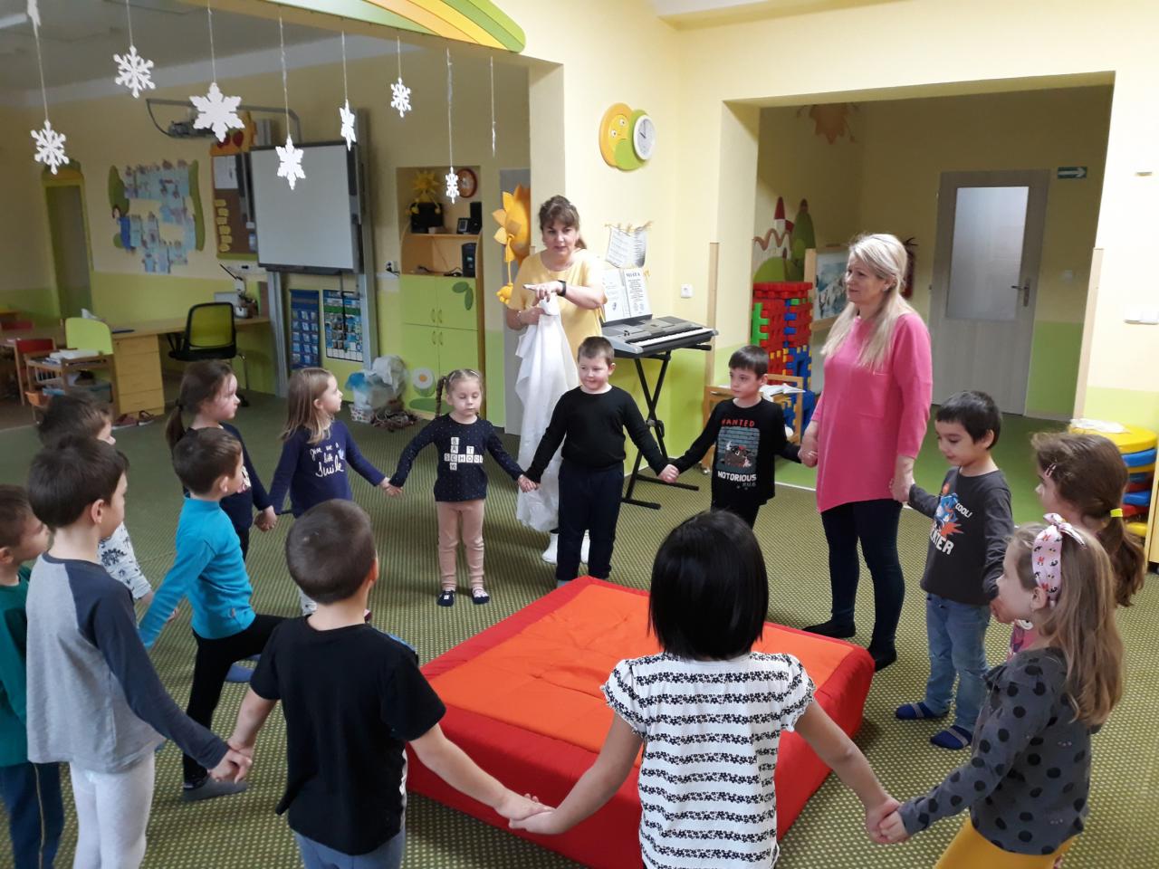 Barevná jsme školička a v ní svítí sluníčka To jsou naše děti do školičky letí.