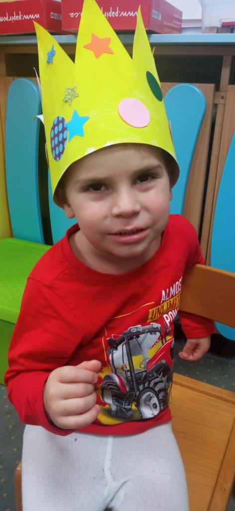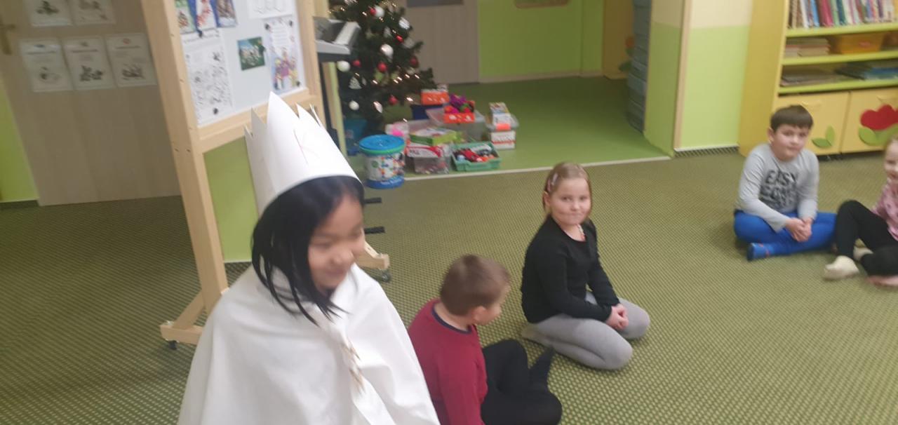 Děti se seznamují s tradicemi Vánoc, v tomto případě vlastně již s jejich vyvrcholením. Dále poznají pohádkovou postavu pana krále a zahrají si na něj. Zpívají koledu ,, My tři králové jdeme k Vám".