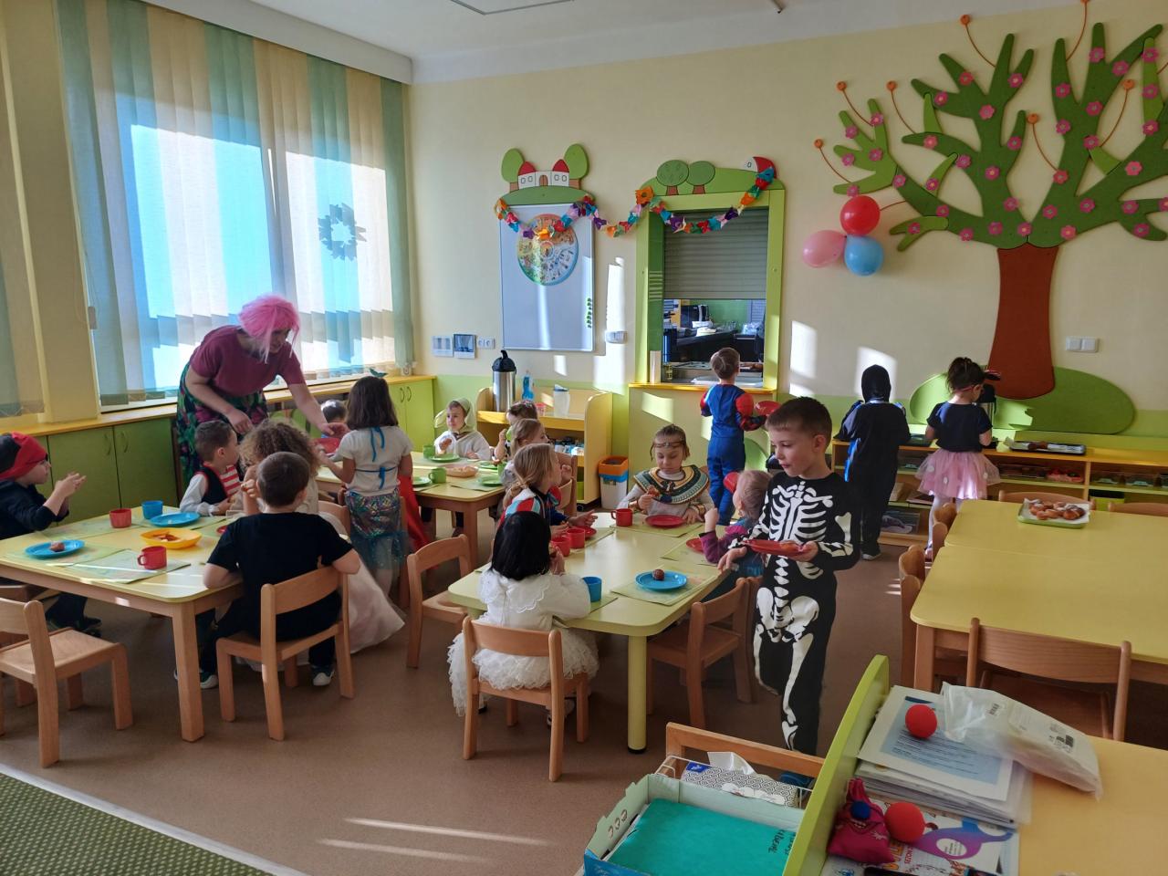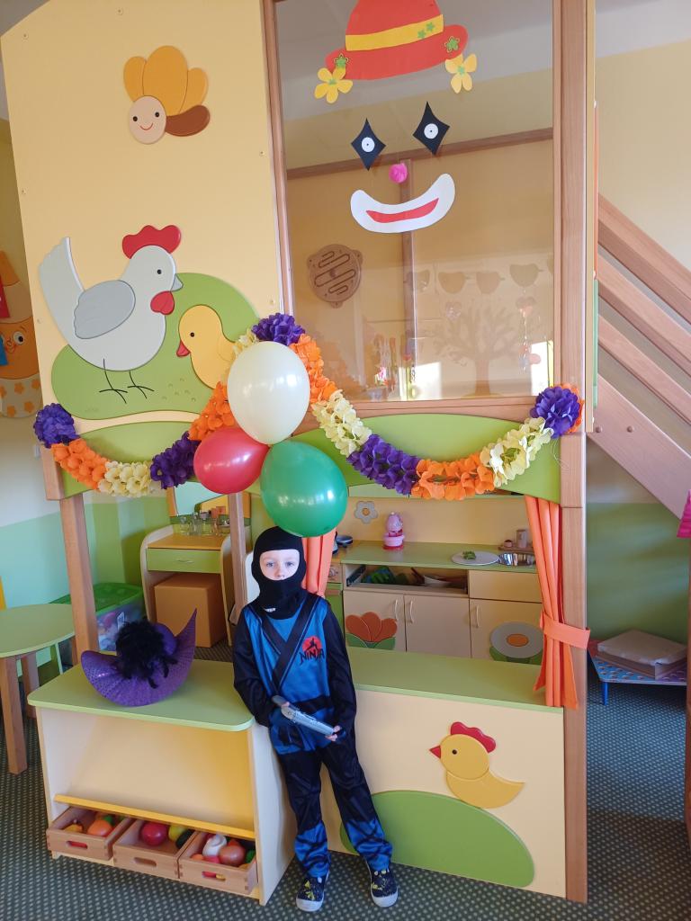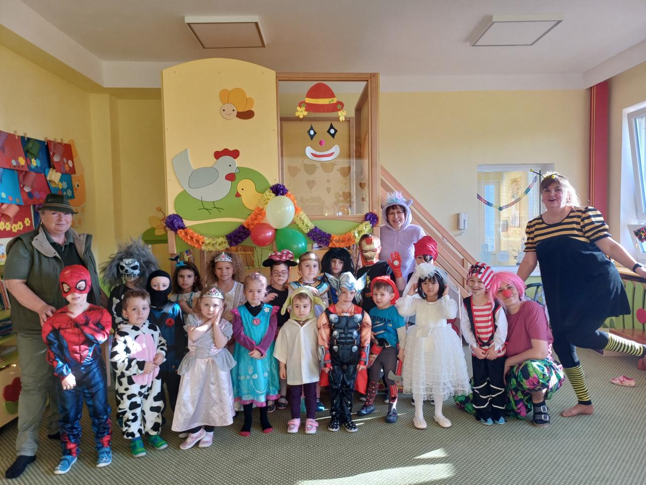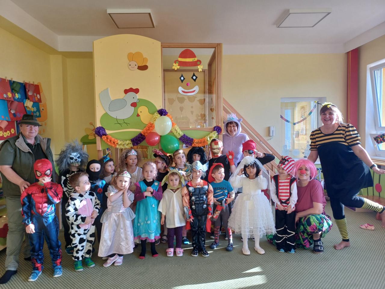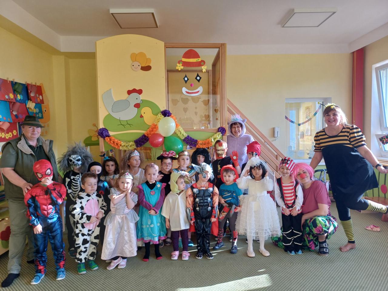 Třídy byly vyzdobeny balónky, barevnými fáborkami a papírovými girlandami. Pak už se jen čekalo, až se dostaví děti ve svých kostýmech.