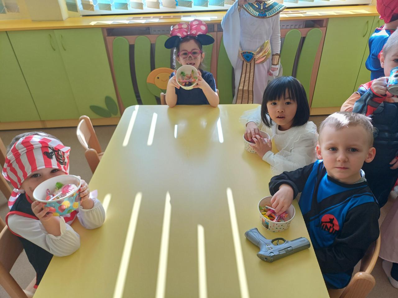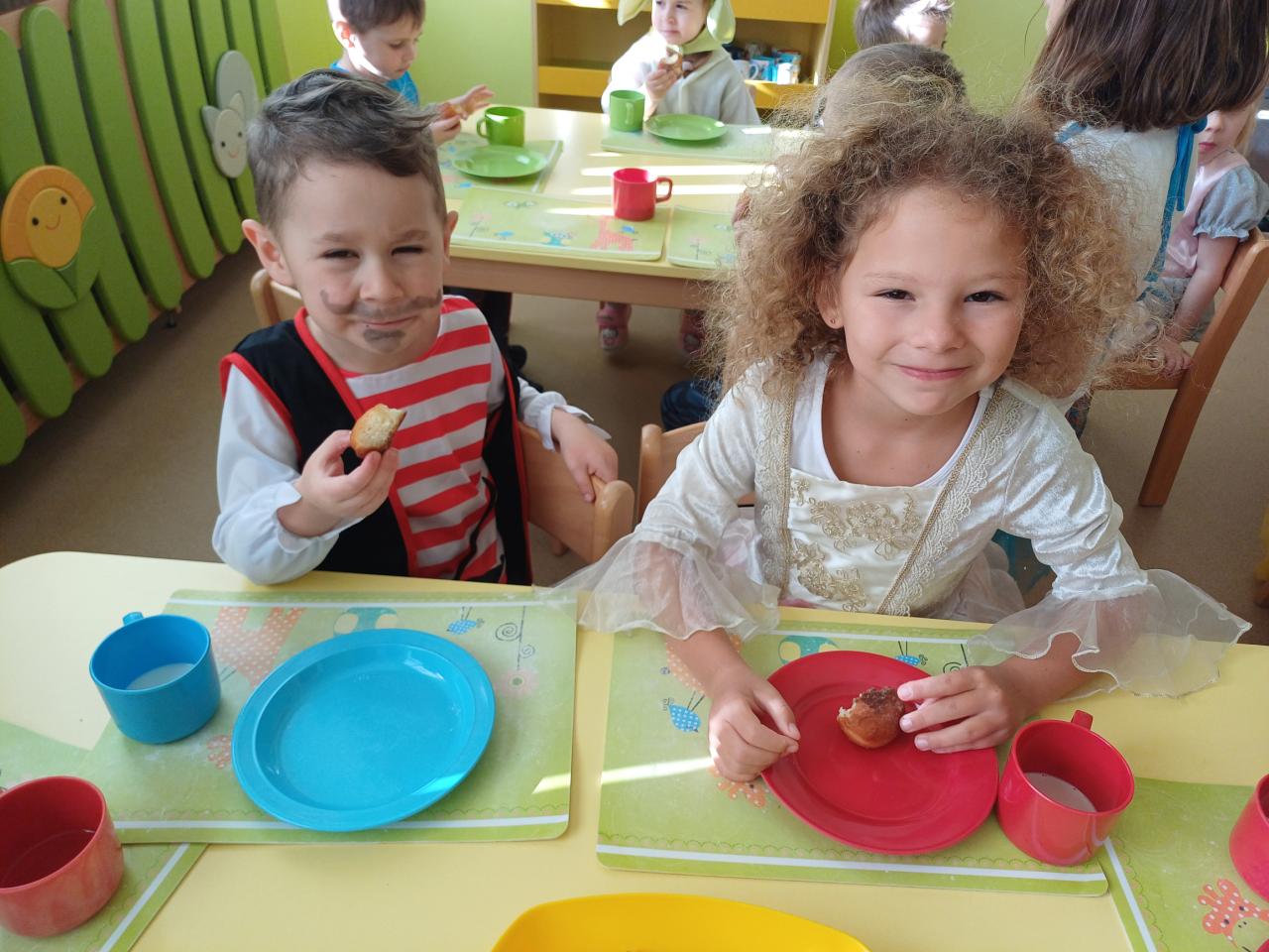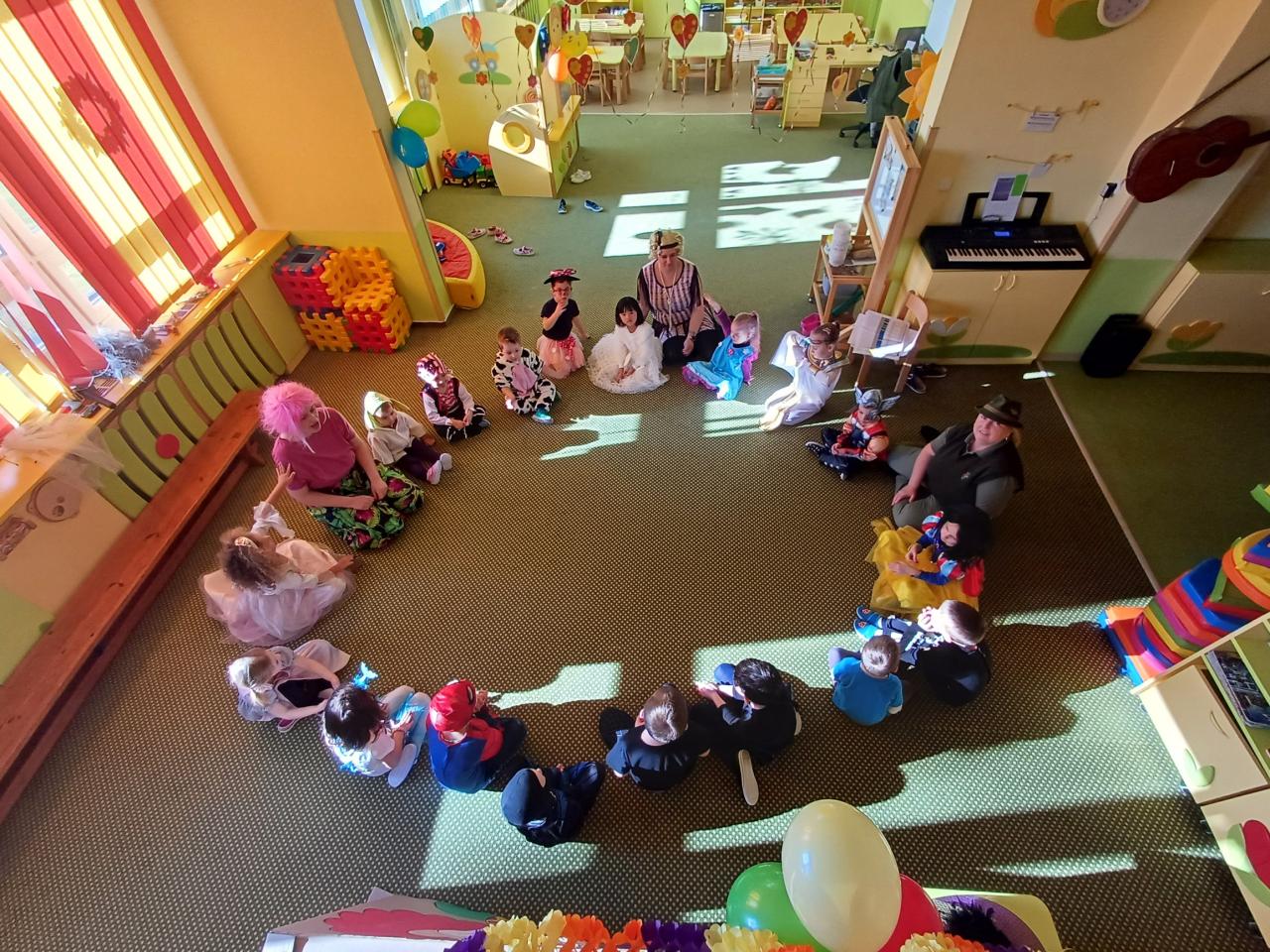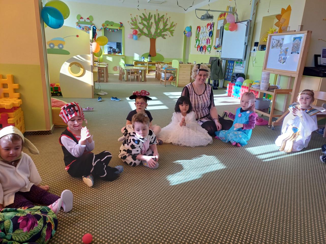 Třídy byly vyzdobeny balónky, barevnými fáborkami a papírovými girlandami. Pak už se jen čekalo, až se dostaví děti ve svých kostýmech.