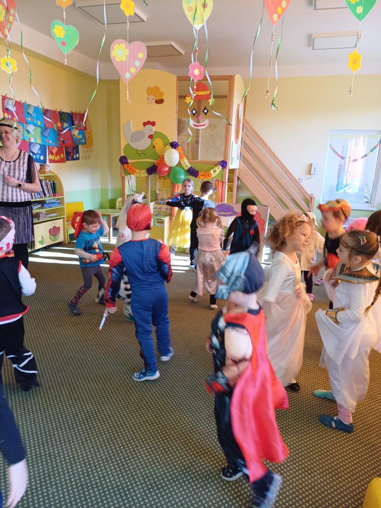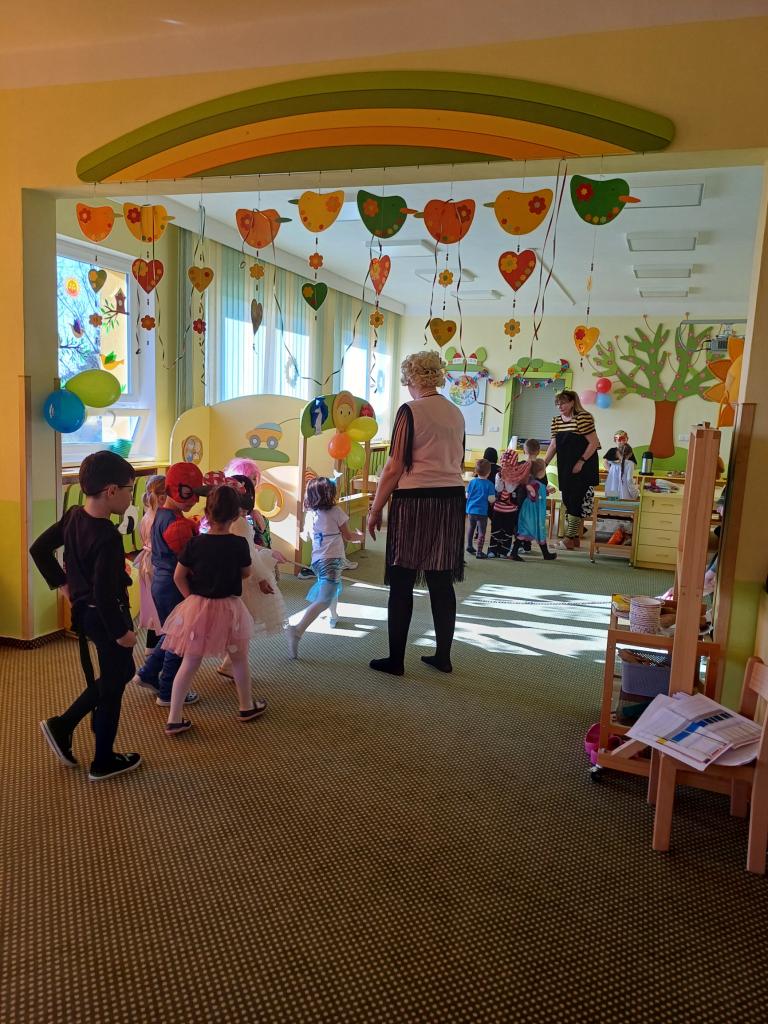 Děti od rána přicházely do svých tříd a těšily se, až začne karnevalový rej. Pouštěly se písničky, tancovalo se, pro děti byly připravené různé soutěže a hry.