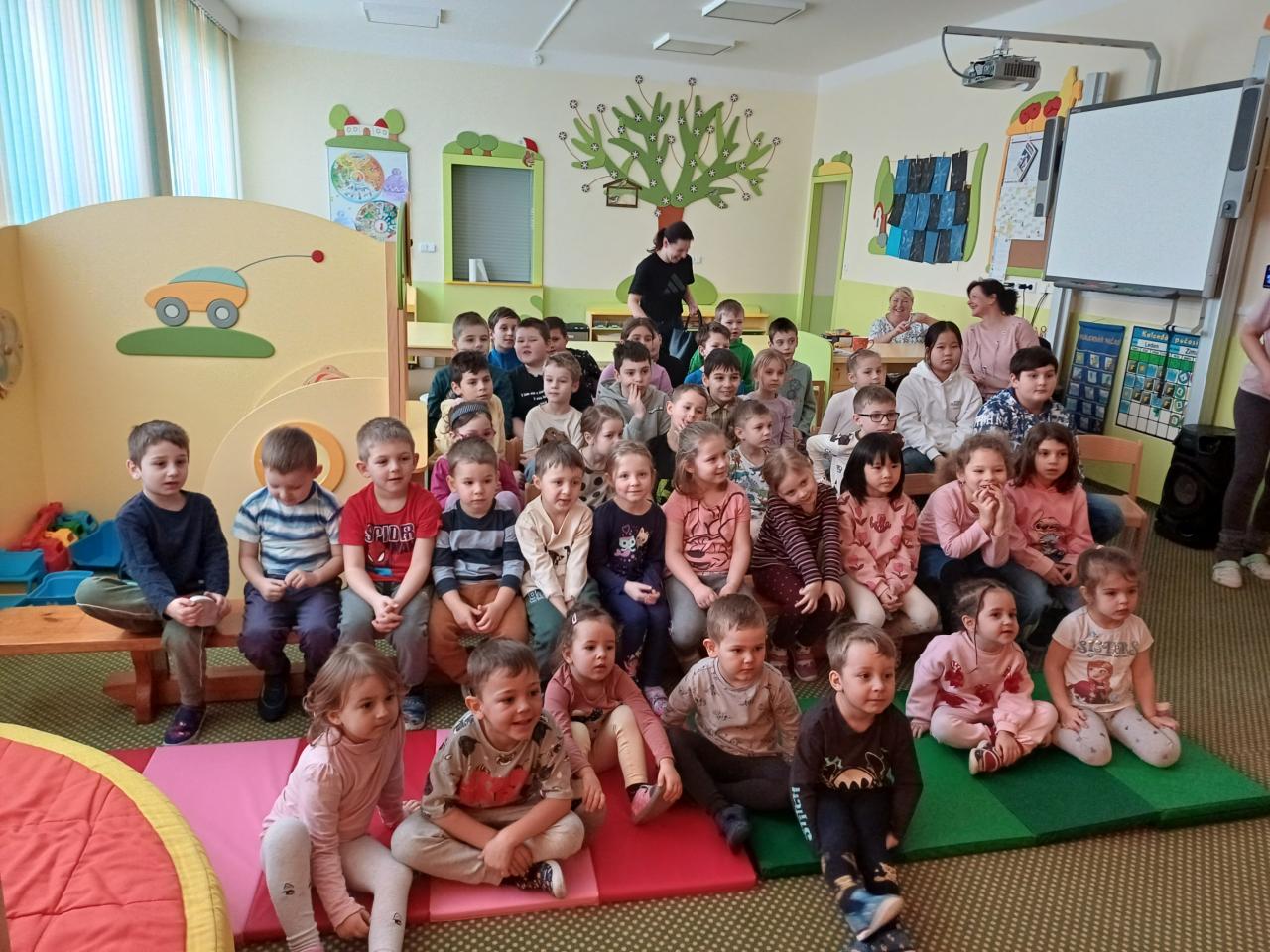Barevná jsme školička a v ní svítí sluníčka To jsou naše děti do školičky letí.